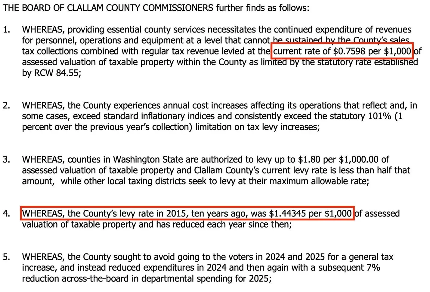 Before the levy hearing, commissioners proposed raising the levy rate from $0.7598 to $1.05 per $1,000 in value — plus annual CPI increases — eliminating the 1% growth cap until 2031. That’s a big ask, designed to make anything less feel reasonable.