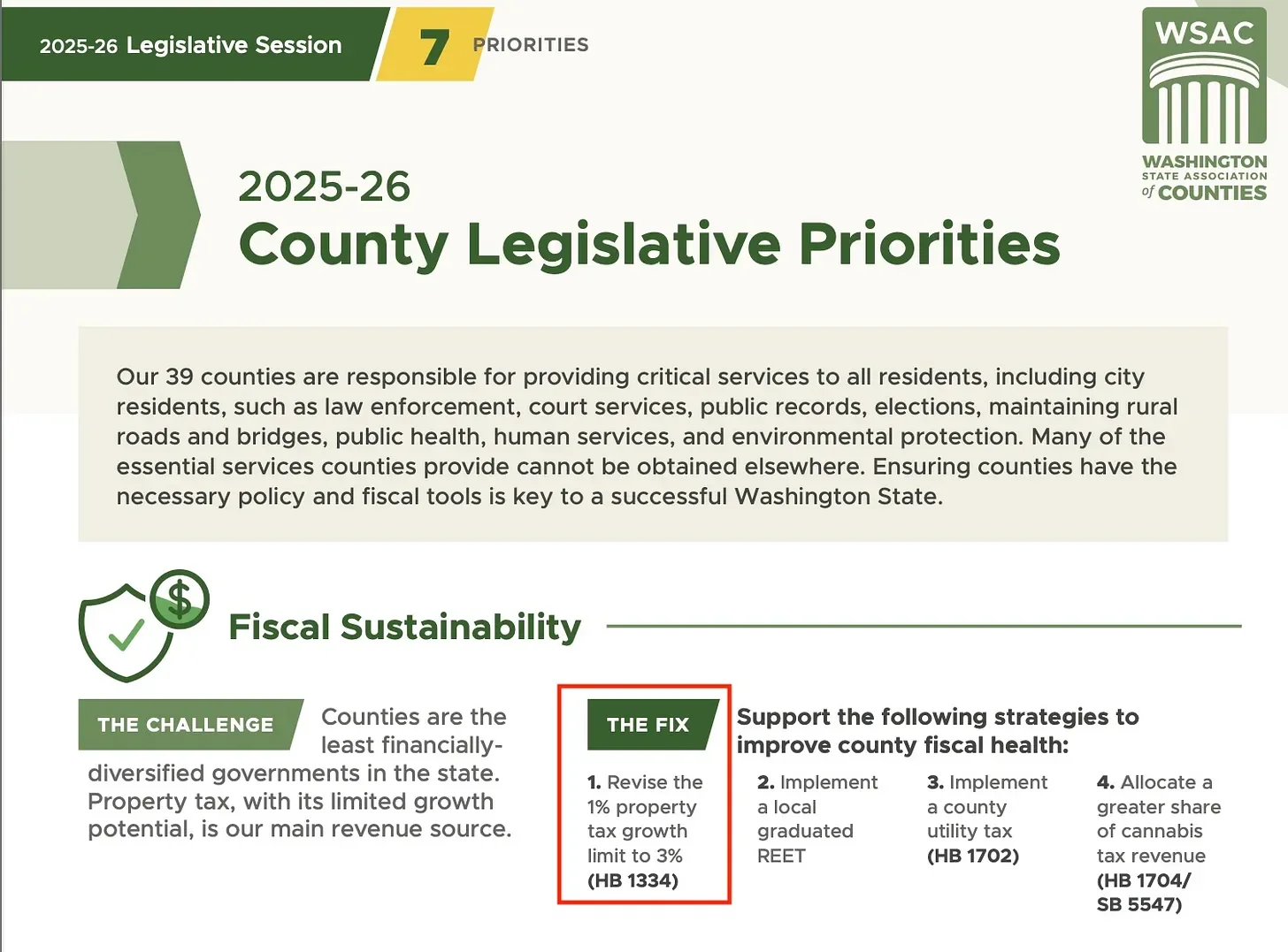 Yet Commissioner French and his fellow commissioners continue to champion WSAC-backed proposals aimed at shaping state law — proposals that consistently drive up costs for residents and businesses and strain housing affordability — increasing property taxes without public input.