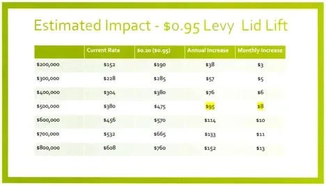 Last week, Clallam County commissioners held a public hearing on a proposed levy lid lift for the county’s general property tax fund. At a special meeting on Monday, August 4, they revised the proposal to raise the levy rate from $0.7598 to $0.95 per $1,000 of assessed property value, while keeping the 1% annual cap on future increases. For context, this change would add about $95 per year in property taxes for a home assessed at $500,000.