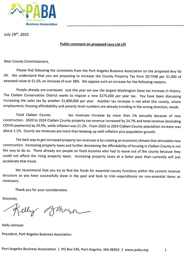 The community’s stance has been clear: overwhelming opposition to the commissioners’ proposed levy lift for the county’s general fund. Numerous comments and a letter from the Port Angeles Business Association echoed a common refrain: lower-than-average incomes, unaffordable housing, and an increasing tax burden are driving long-time residents out of Clallam County.